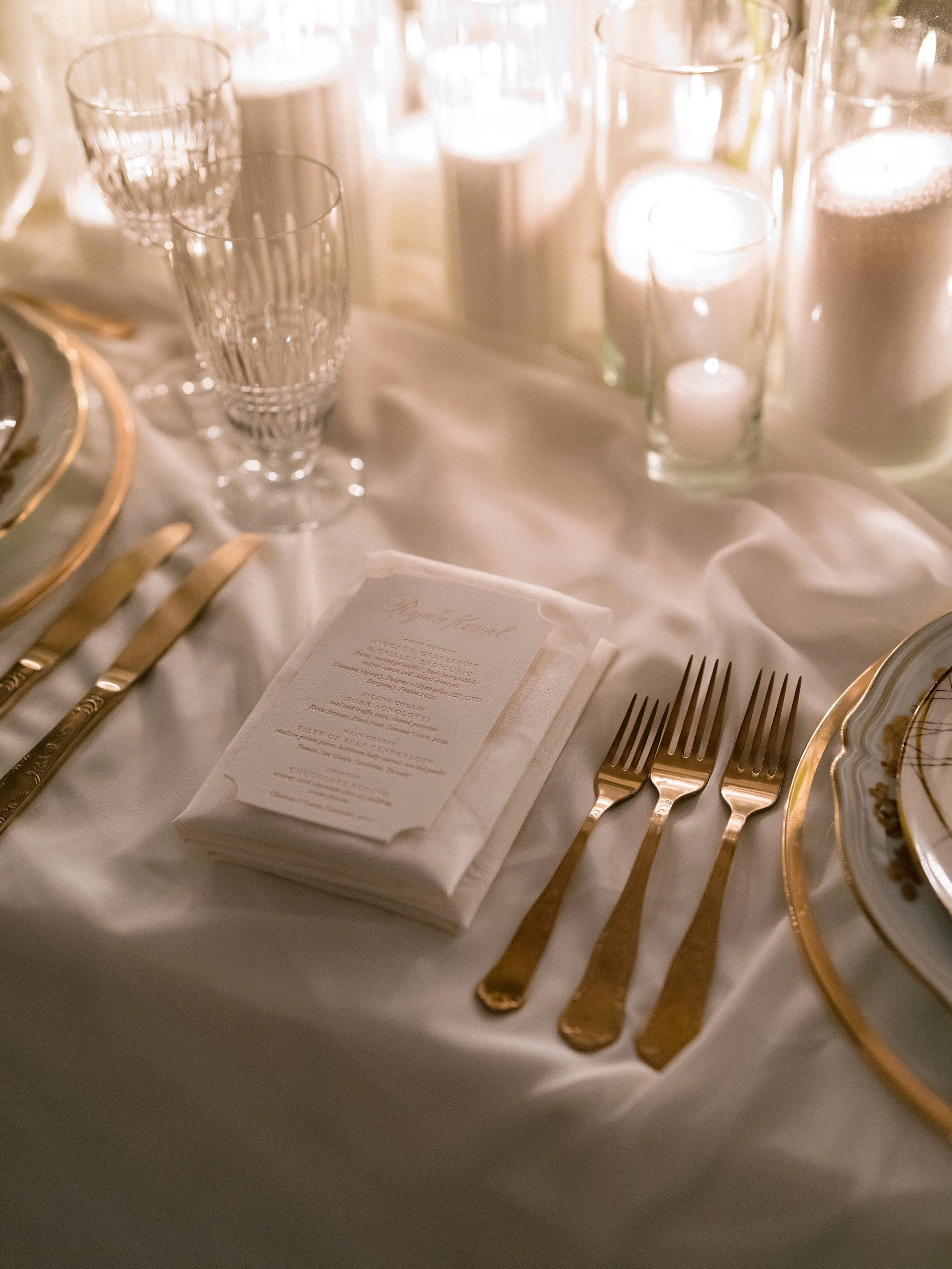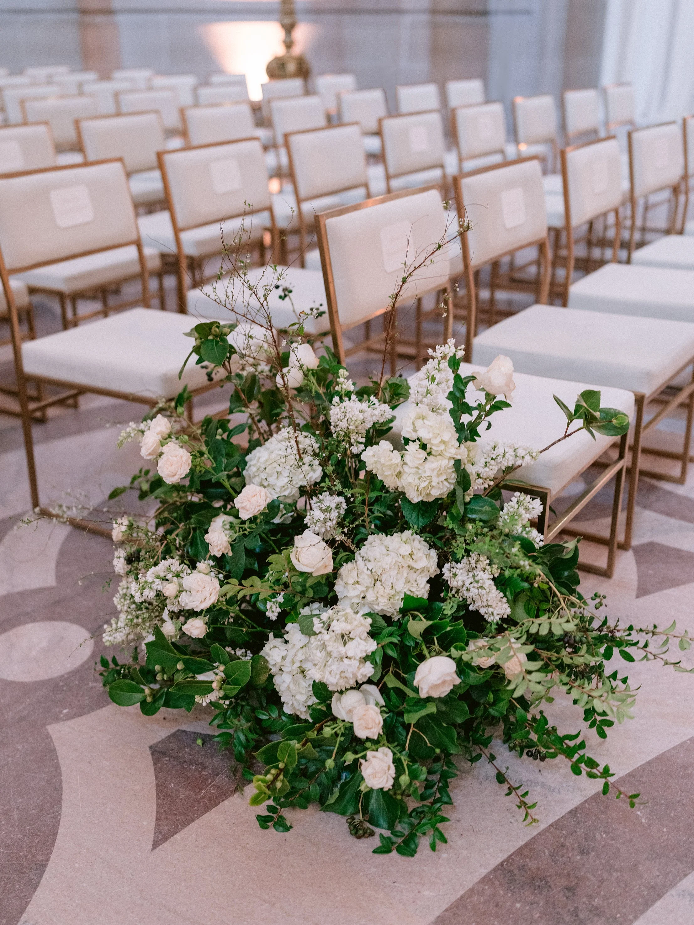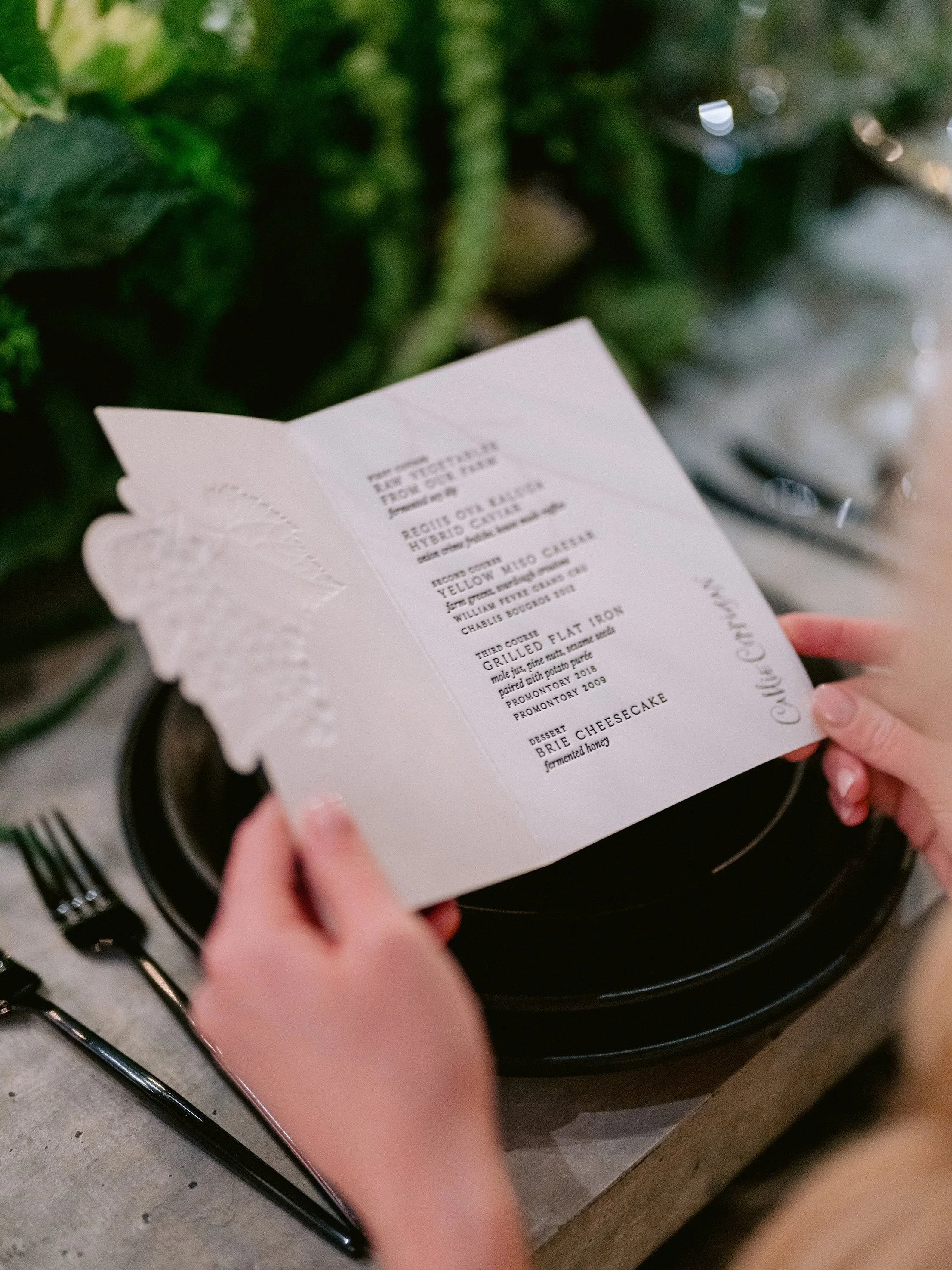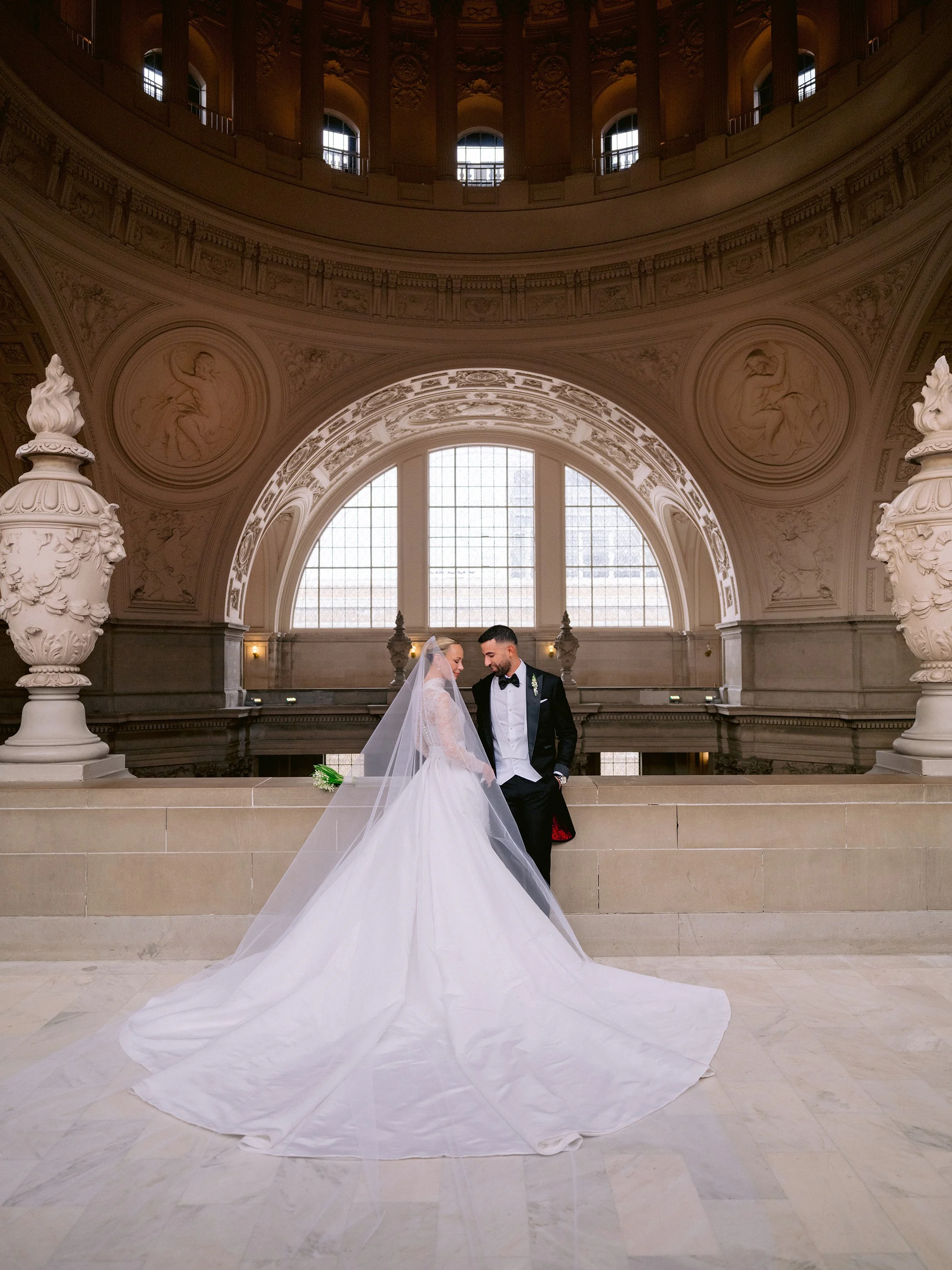 The festivities began with a rehearsal dinner at the Promontory Winery, where sweeping vineyard views created an intimate and refined welcome for their closest guests. From there, the celebration moved to San Francisco for a vibrant welcome party at the Fairmont San Francisco, setting the tone for a weekend that balanced grandeur with effortless elegance. The wedding itself took place in the breathtaking San Francisco City Hall, where the couple exchanged vows beneath its soaring rotunda, surrounded by timeless architecture and soft, romantic light. Thoughtfully designed from beginning to end, the stationery mirrored each setting—offering guests a cohesive and immersive experience that felt as meaningful as it was beautiful.