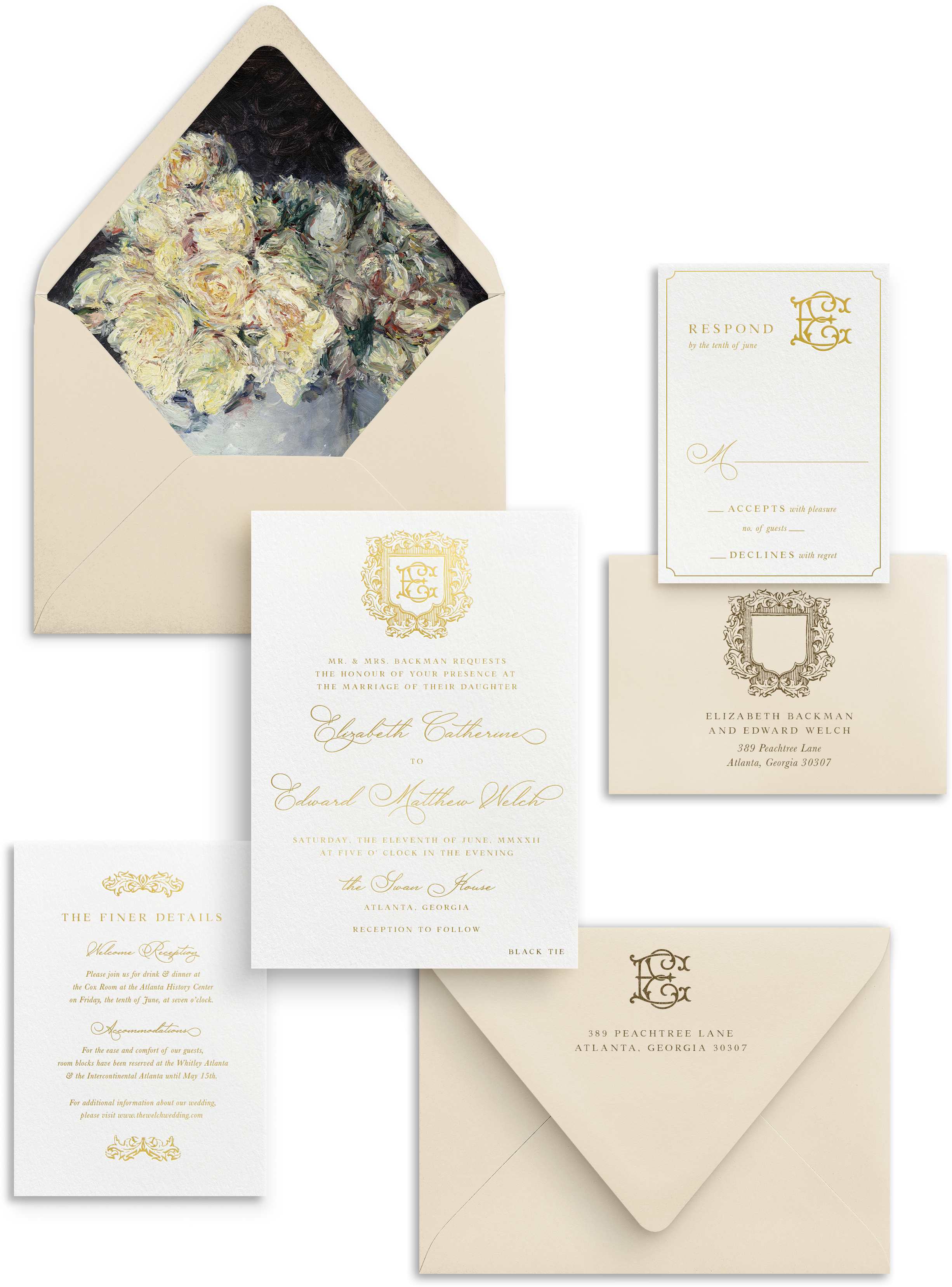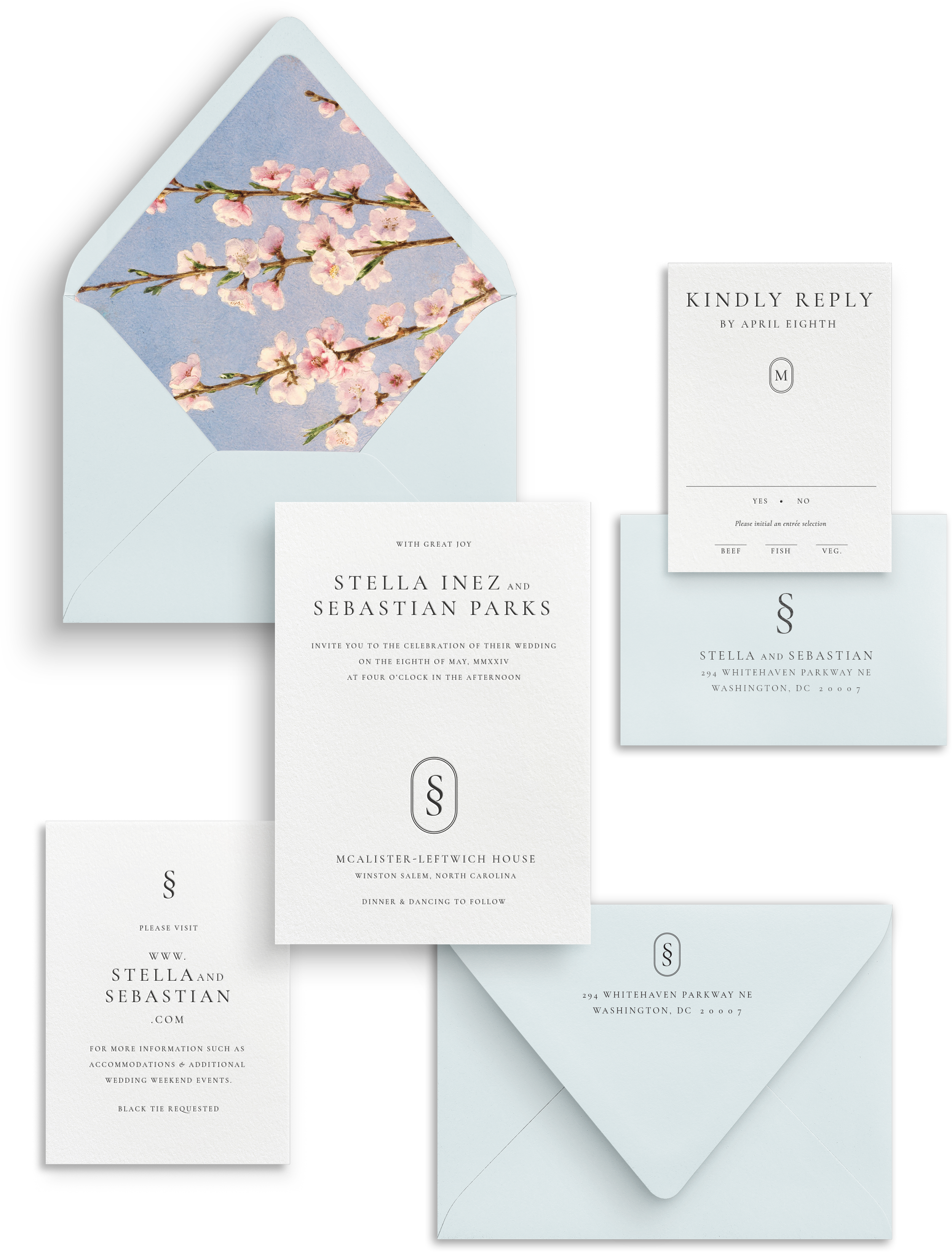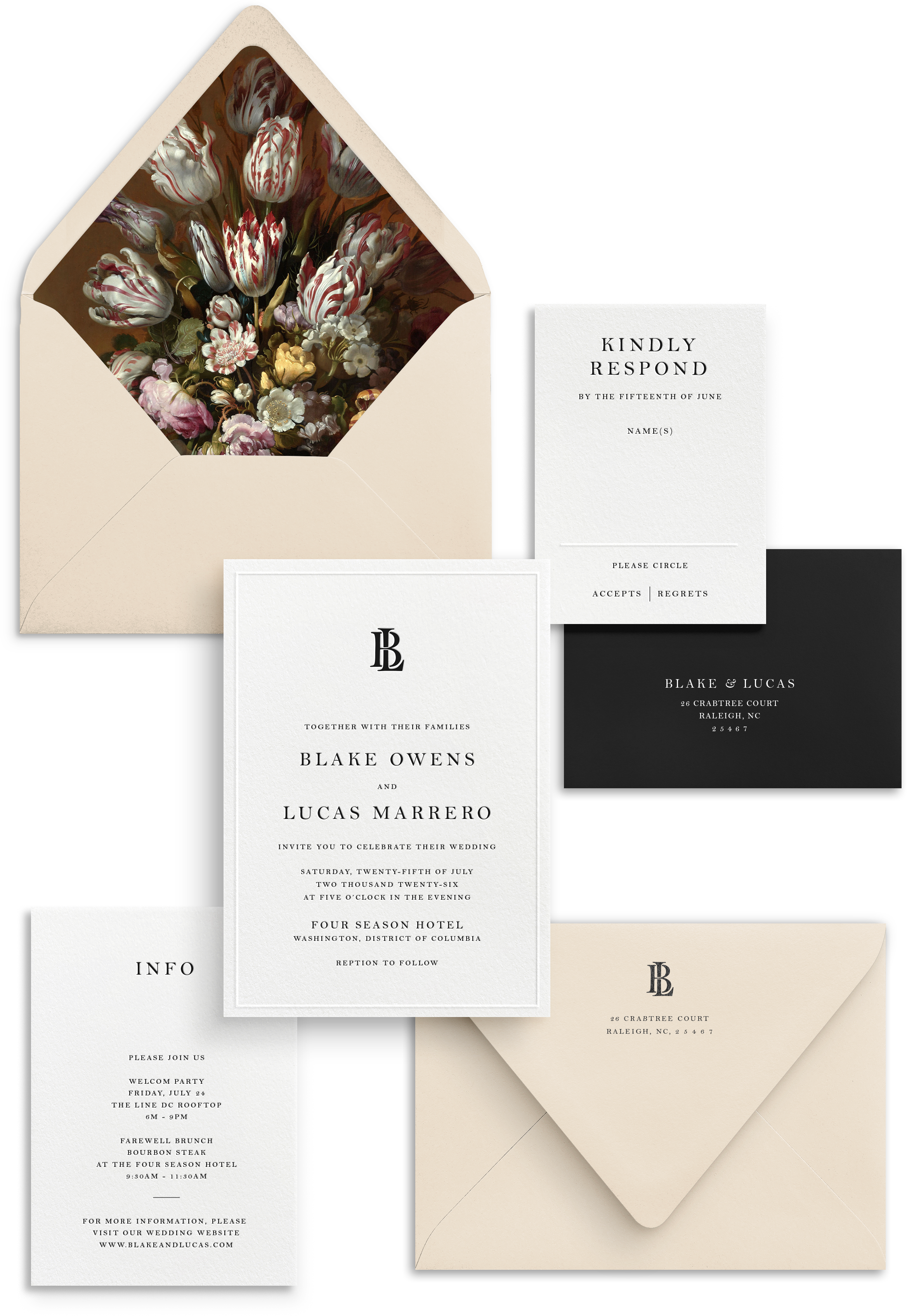 Take it up a notch by exploring enchanting embellishments like envelope guest addressing, liners, wax seals, and more at our EMBELLISHMENT shop. Details matter, and we've got you covered.
