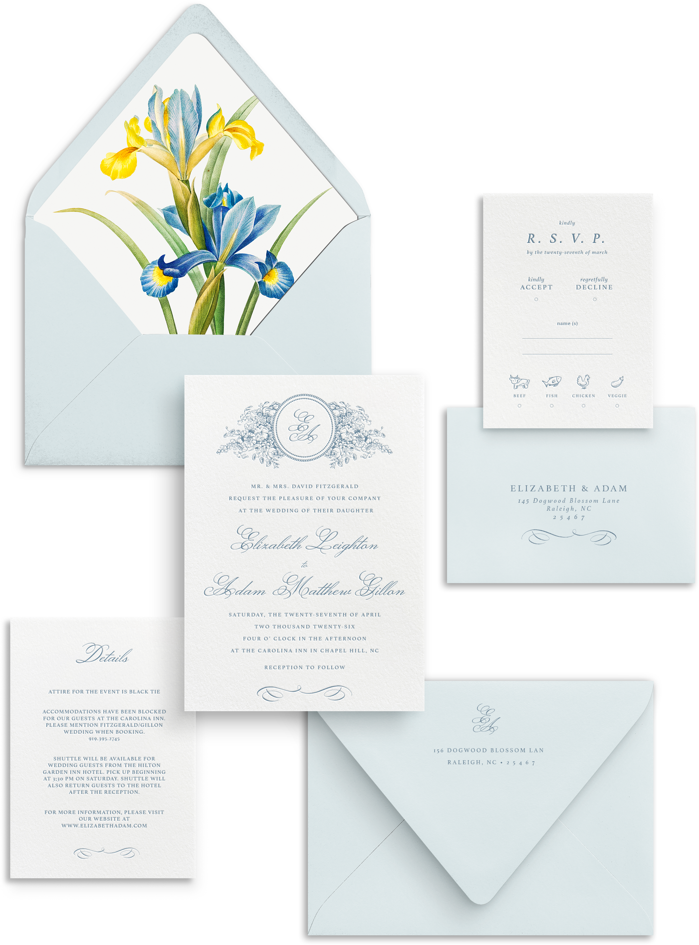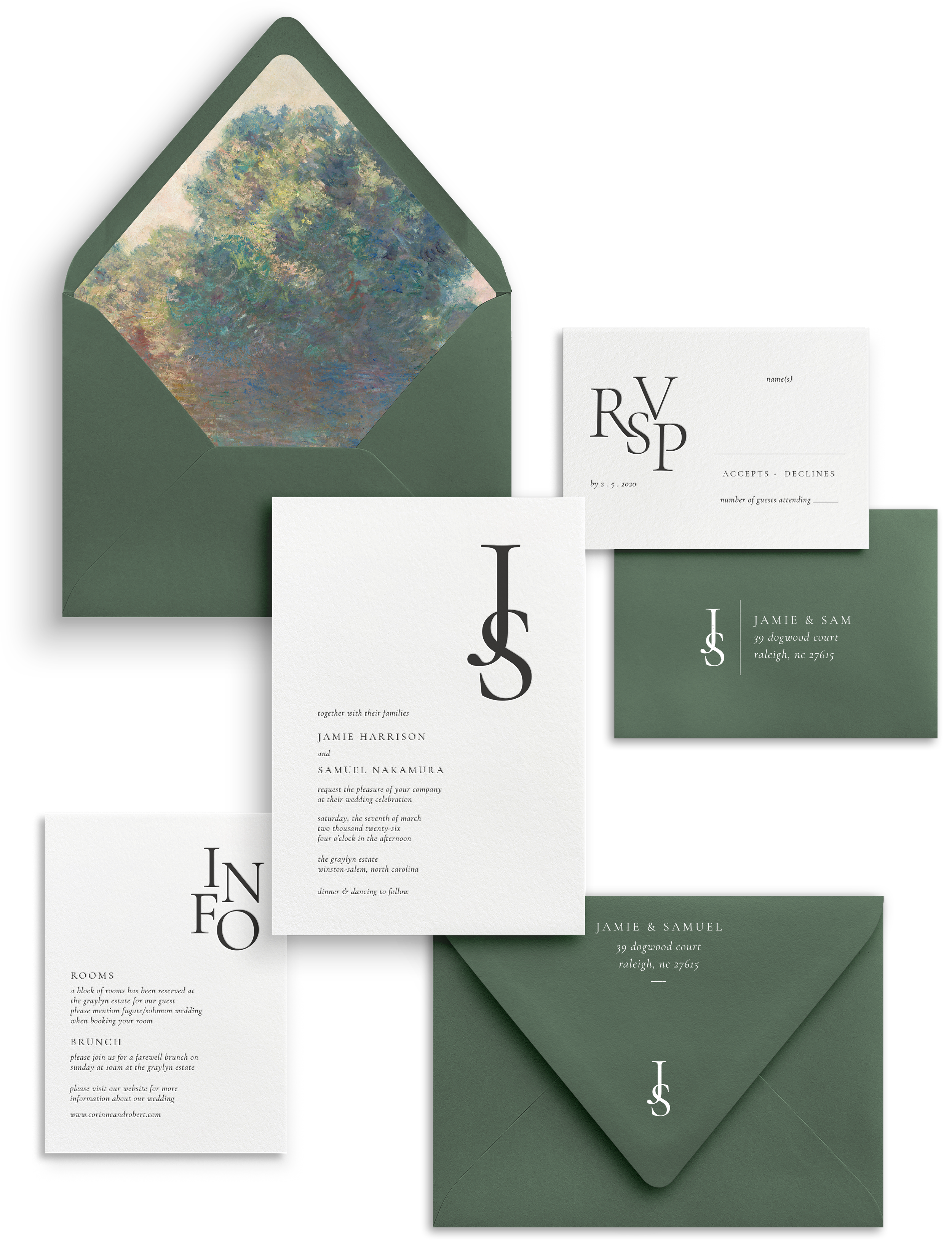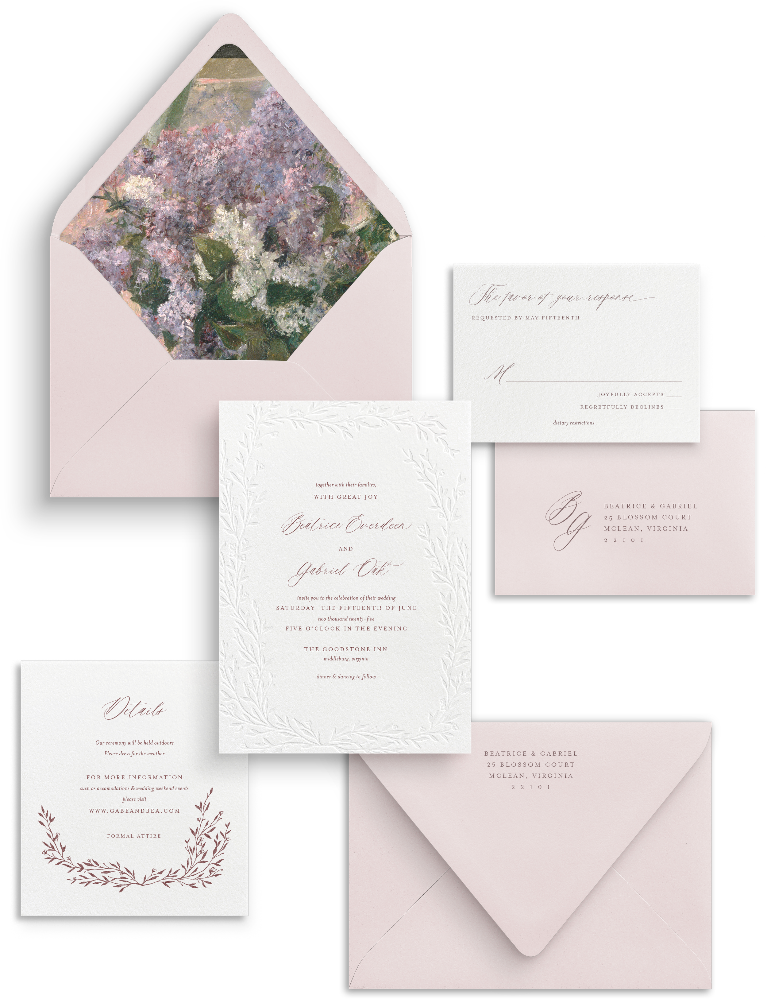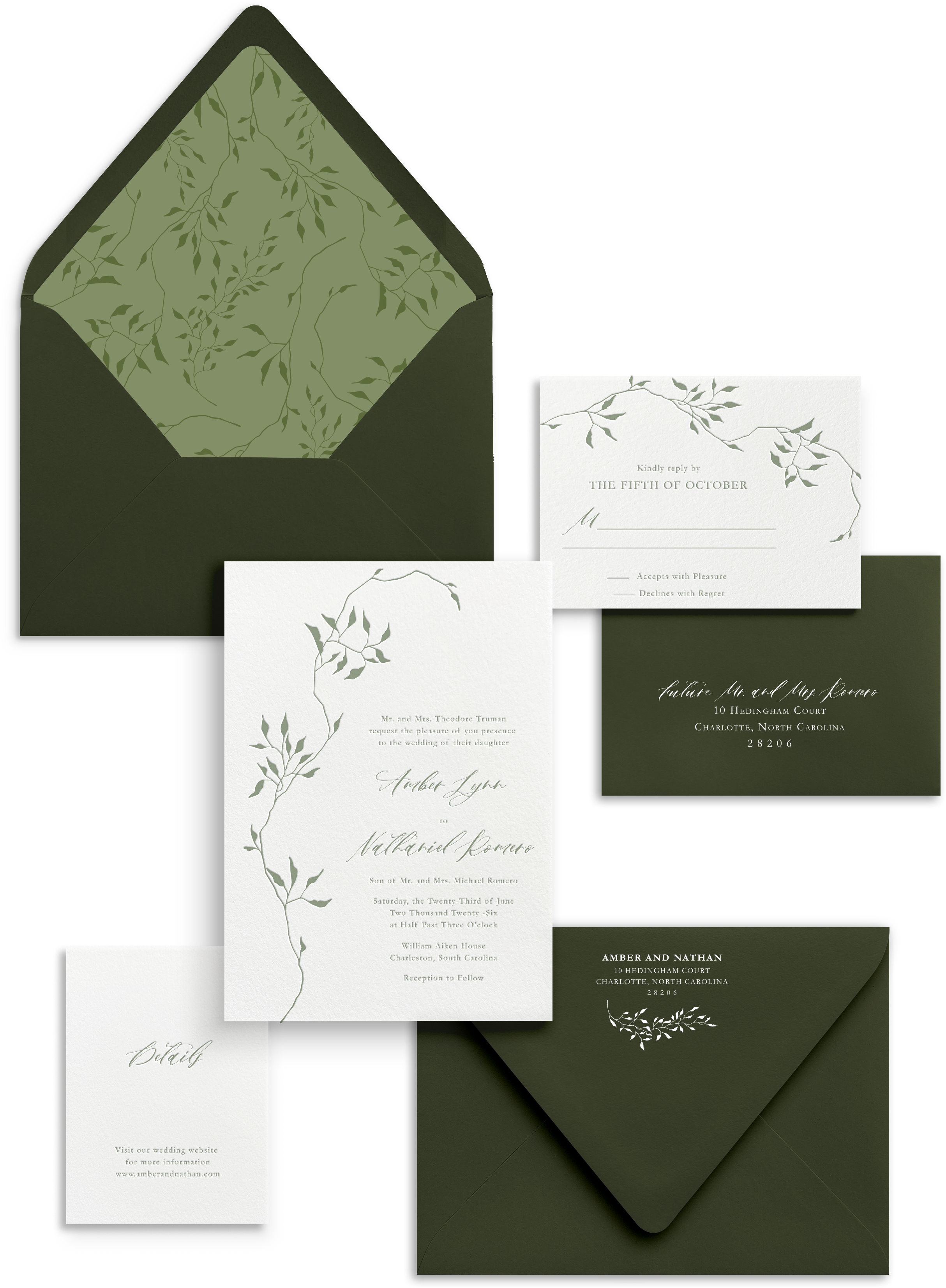 Take it up a notch by exploring enchanting embellishments like envelope guest addressing, liners, wax seals, and more at our EMBELLISHMENT shop. Details matter, and we've got you covered.
